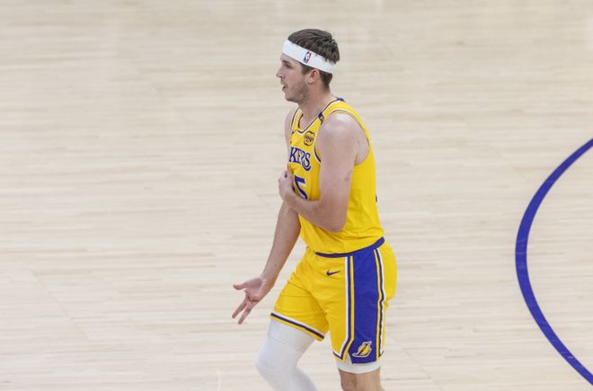 湖人与国王的比赛,堪称里夫斯的“个人成长纪录片”。首节当八村塁和艾顿在内线打开局面时,他虽仅得4分,却送出3次助攻,其中一记横跨半场的长传找到快下的艾顿,助其完成单手扣篮,展现出超越年龄的传球视野;次节湖人陷入“进攻断电”,被威少率国王打出13-2的攻击波时,又是里夫斯挺身而出——先是命中一记底角三分止血,随后突破造犯规两罚全中,紧接着又送出助攻,单节连得5分+2助攻,帮助湖人不至于被拉开分差。