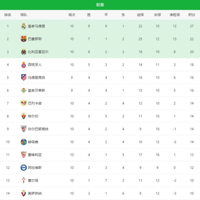 下半场巴萨全力反扑,但姆巴佩错失点球,佩德里染红离场。最终,皇马主场2-1力克巴萨,终结国家德比4连败的耻辱。积分榜上,皇马积27分领跑西甲,领先巴萨5分稳居榜首,西蒙尼的马竞则掉队啦。