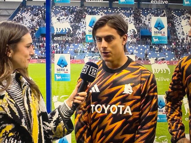 雷速体育10月27日讯 北京时间10月26日22:00,意甲第8轮,罗马客场1-0战胜萨索洛,本场比赛结束之后,为罗马打进制胜球的迪巴拉获得全场最佳球员并接受了DAZN的采访。